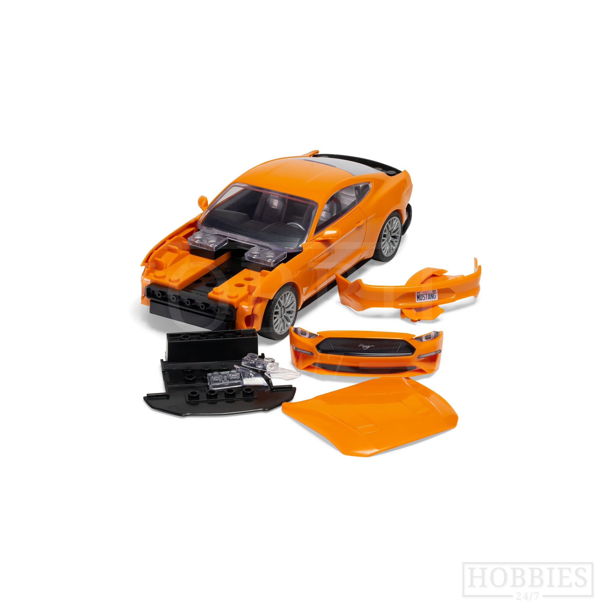 What is QUICK BUILDAirfix QUICK BUILD is an exciting range of brick-based models suitable as an introduction to modelling for any age of 6 and up. The pre-coloured pieces simply push together to build an impressive model which can then be decorated with the included self-adhesive stickers. No paint or glue is needed to make these fantastic models look like the real thing, and once completed there's no evidence of any of the brick fittings showing.When built they are tough enough to be used as toys, or smart enough to use as display models. Either will show off those great modelling skills! Included with each model are a full set of easy-to-follow colour instructions, free-rolling wheels for cars and tanks, and display stands for all the aircraft.Ford Mustang GTThe Mustang is the only original Ford model to remain in uninterrupted production over five decades of development and revision. Over 10 million Mustangs have been produced in the U.S. alone. The latest GT is a muscle car for the 21st century, with not only the usual Mustang engine grunt, but also an eco-version as well. 45 parts make up this dramatic muscle car.Ford Motors Company Trademarks and Trade Dress used under license to Hornby Hobbies. Manufactured by Hornby Hobbies Ltd.