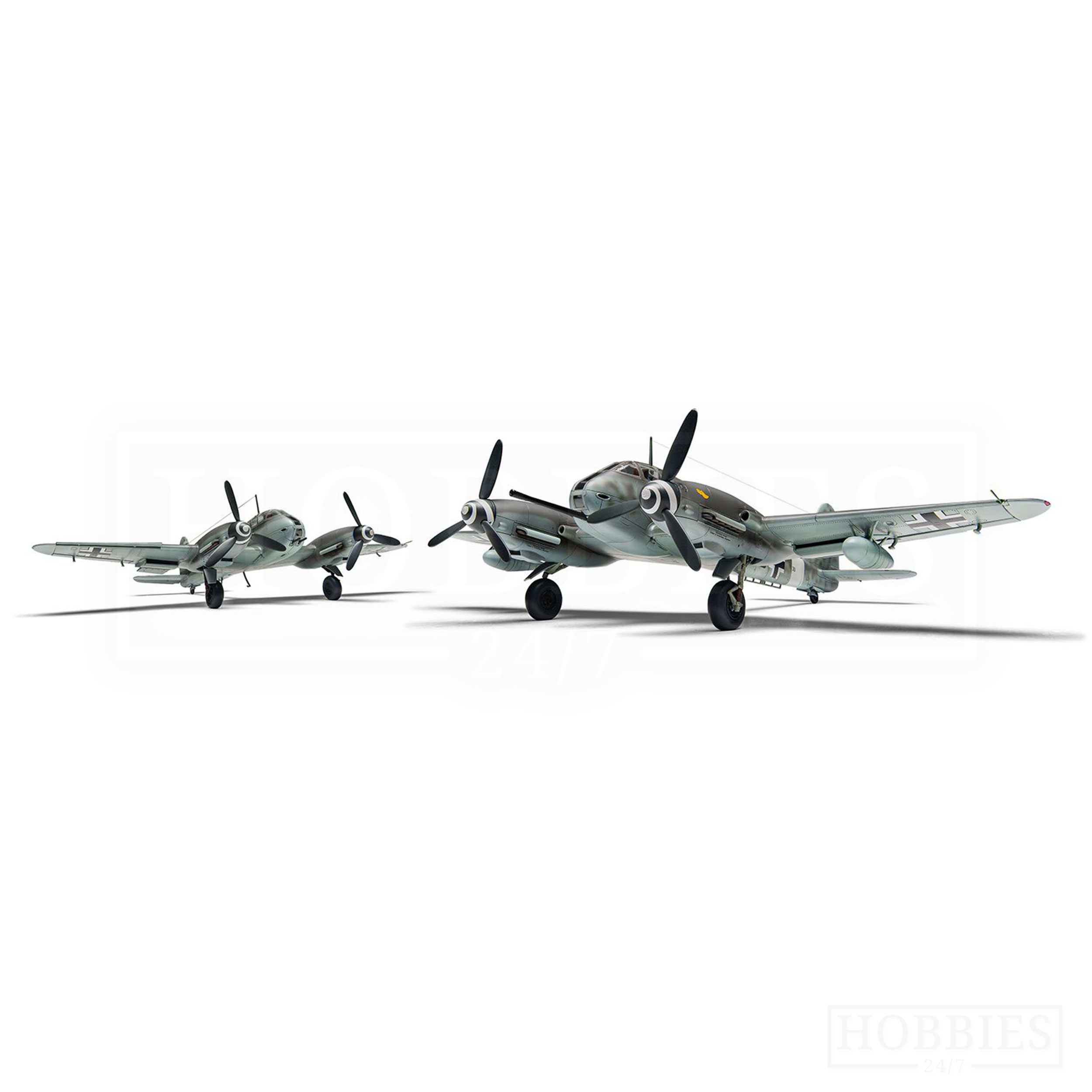 The Messerschmitt Me410 was developed as a heavy fighter but went on to perform several roles such as night fighter, bomber destroyer and reconnaissance. Entering service two years later than scheduled in 1943 as a replacement for the Me210, the aircraft featured several distinctive features including the twin gun barbettes.