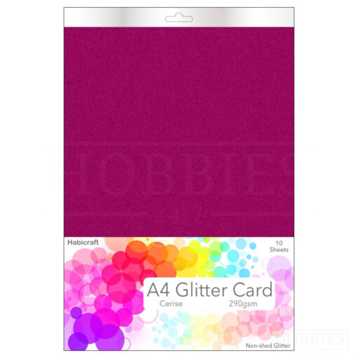 Cerise Non-Shed Glitter Card 290gsm 10 Sheets A4