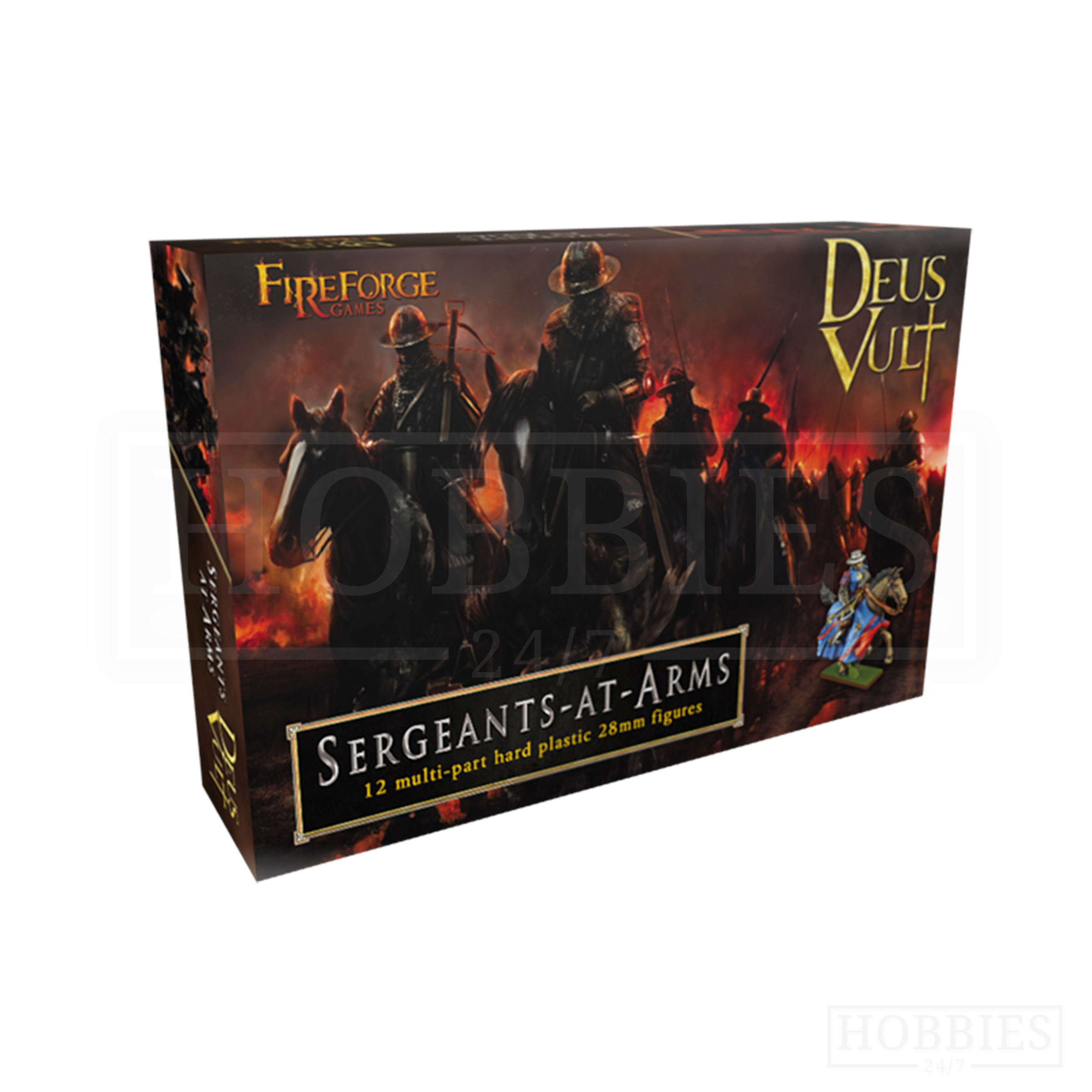 This box set contains twelve 28mm multi-part plastic Sergeants at Arms with a mix of barded and unbarded horses.