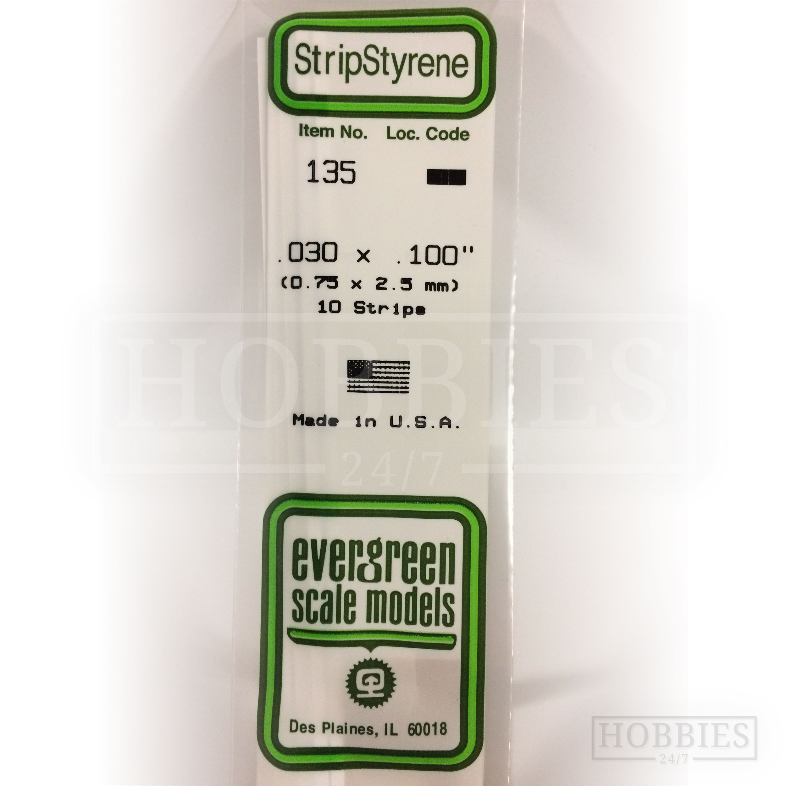 Evergreen Styrene Strip EG135 0.75x2.5mm