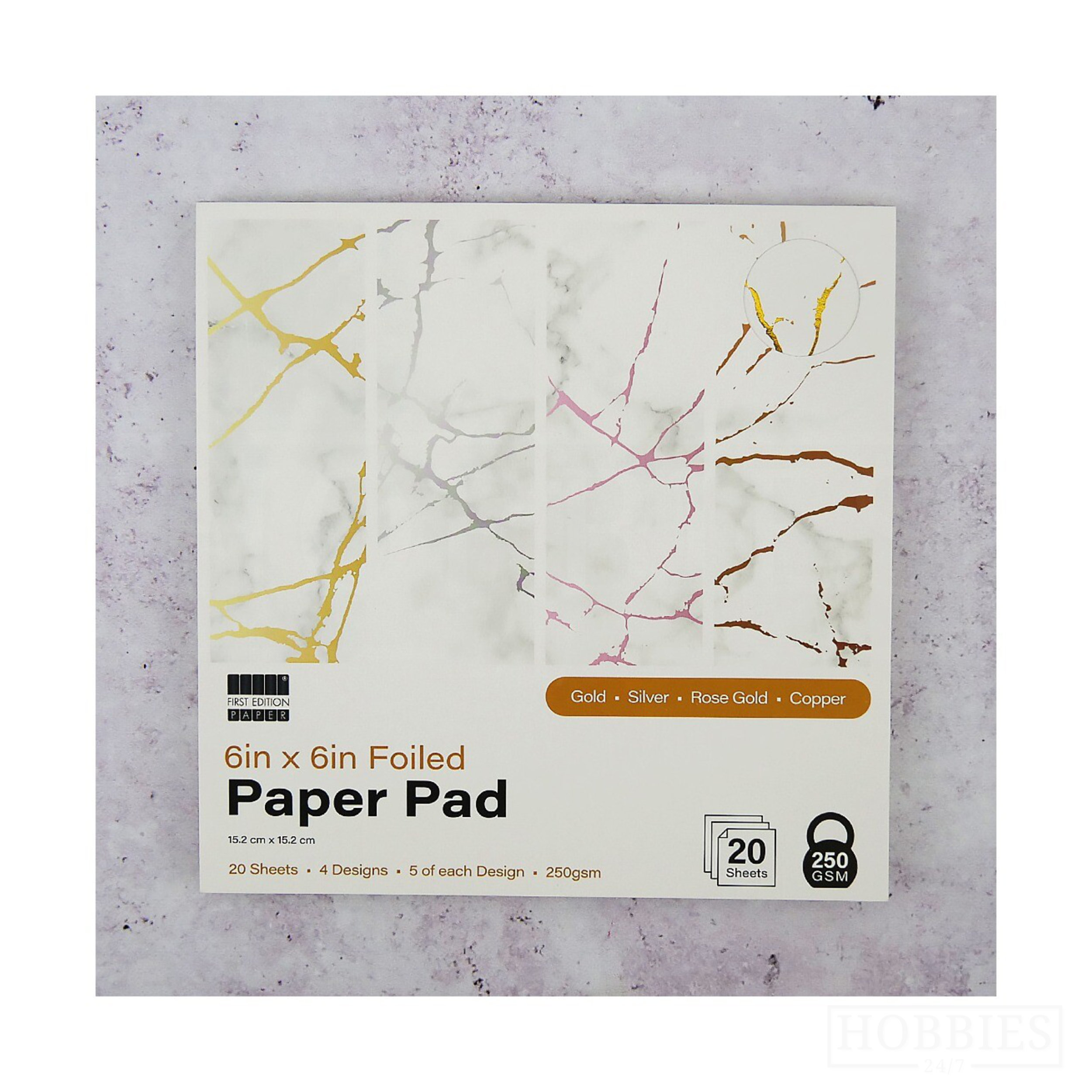 Foiled Marble Paper Pad White 6×6 Inch