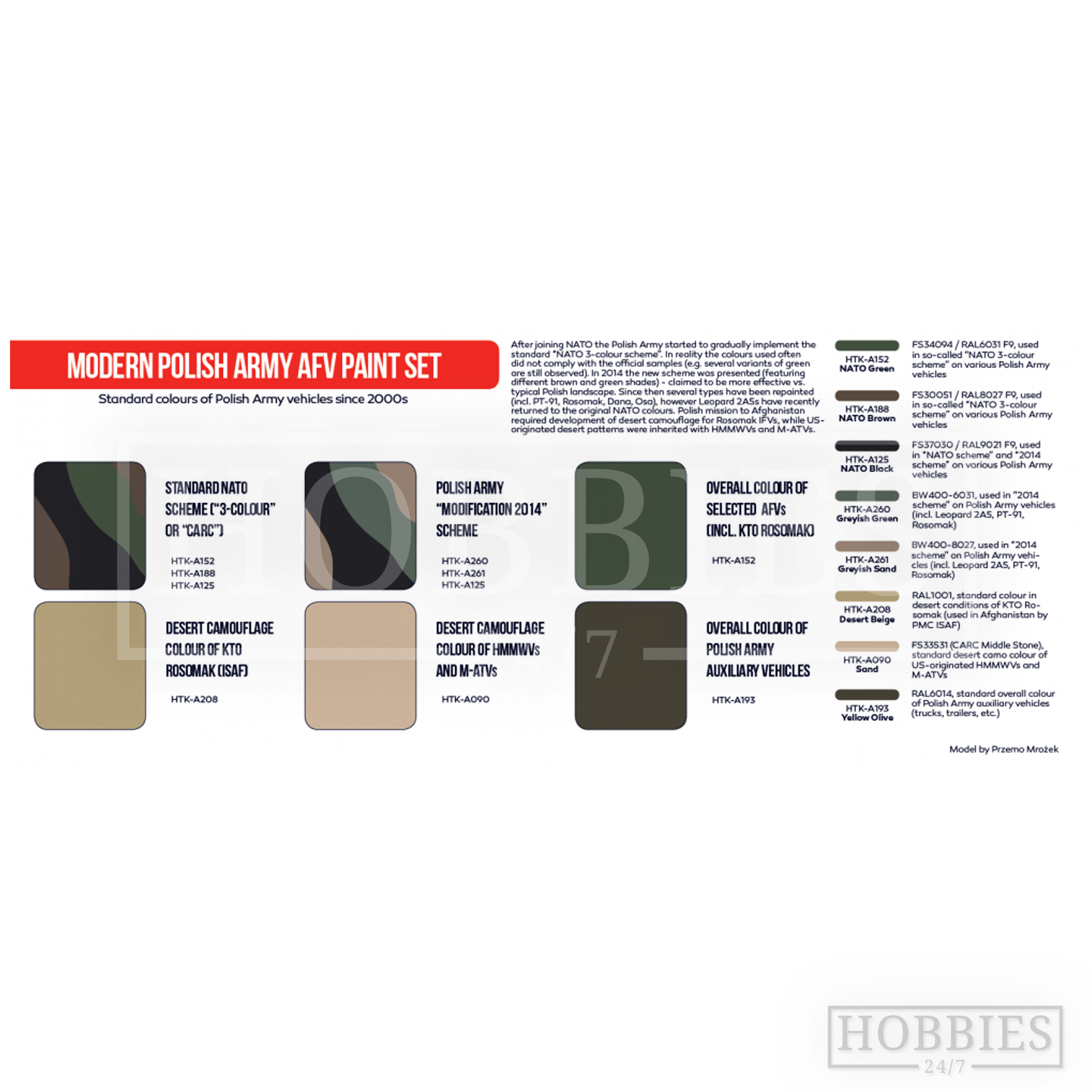 Includes standard colours of Polish Army vehicles since 2000s.