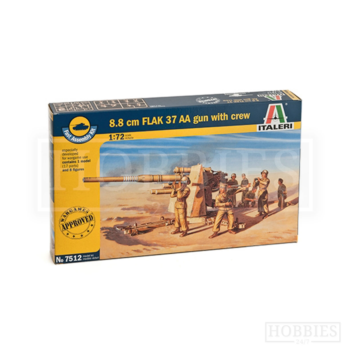 Italeri 8.8cm Flak 37 AA Gun With Crew 1/72 Scale