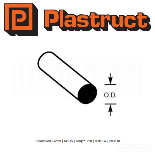 Plastruct Round Rod MR-15 – Length: 250mm – OD: 0.4mm 10 Pack